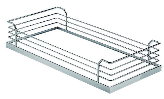 Навісна полиця ARENA Style виготовлена з хромованої сталі, дно полиці виготовлене з ДСП білого кольору. Розмір корзини: ширина 228 мм, довжина 470 мм, висота 75 мм.