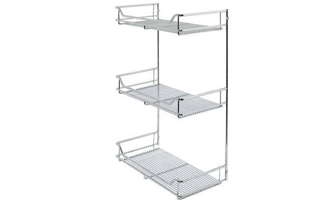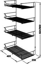 Полиця для шаф, розділена на 4 поверхи, виготовлена з хромованої сталі. Ширина полиці 403 мм, висота 900 мм, глибина 208 мм. Монтаж полиці для шаф виконується шляхом кріплення гвинтами до стіни.