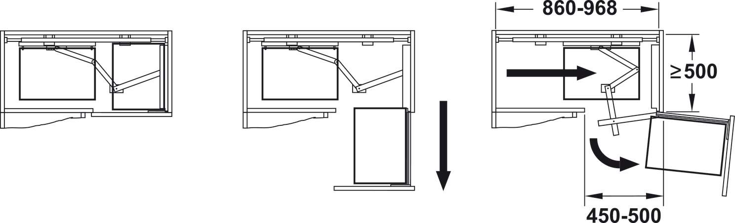 Опис Повний комплект Magic Corner Style 540-770 мм антрацит висувний поворотний для кутових шаф правий 54619820