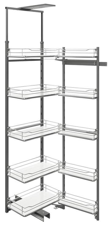Матеріал: Висувна рама, навісні полиці та підвісні корзини: сталь, основа і полиці: ДСП або сталь