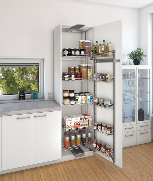 Монтаж: Висувна шафа для кріплення шурупами до базової панелі шафи та верхньої панелі; дверна полиця кріпиться справа або зліва