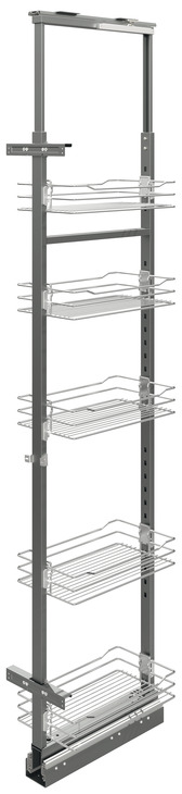 Опис Повний комплект висувної шафи пенала для кухні з 5 дротяними корзинами хром, для корпуса 300 мм висота 1900 - 2200 мм 54680213