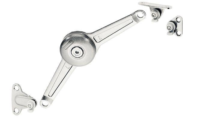 Рух Дует Стандарт. Відкидний фіксуючий кронштейн Duo з регульованим зусиллям гальмування. Для установки на двері з дерева і з алюмінієвими рамами. Кут відкриття становить 75, 90 або 110 градусів. Матеріал: цинковий сплав. Поверхня/колір: нікельований. Кріплення універсальне, його можна монтувати зліва або справа. Силу утримання можна регулювати. Функція встановлюється на утримання або гальмування за допомогою шестигранного ключа SW4 шляхом регулювання регулювального гвинта.