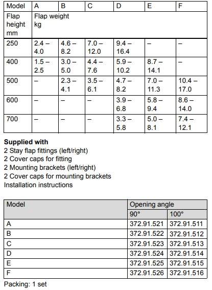Технічні характеристики Комплект підйомника Free flap 3677 модель B кут розкриття 100 ° 37291512