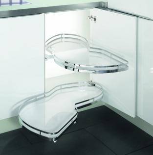 Повний комплект Le Mans ІІ Plus Classic для висувних кутових шаф, з демпфером, лівоповоротний, з можливістю повного висування корзин, кожна корзина рухається самостійно, з протиковзким покриттям, кількість корзин: 2 шт., матеріал: сталь, колір: білий, для внутрішньої глибини шафи мін. 500 мм, для внутрішньої ширини шафи мін. 960 мм, ширина фасаду 600 мм, для внутрішньої висоти шафи 600–750 мм, товщина бокових панелей 16 або 19 мм, максимальне навантаження 25 кг/полиця.