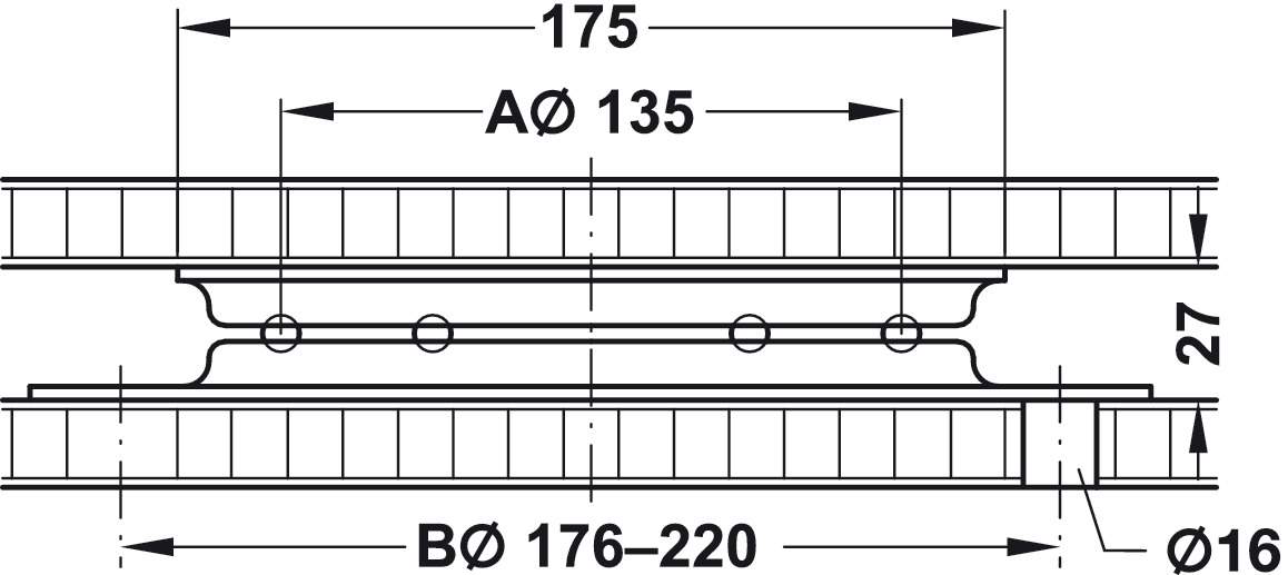 Поворотна фурнітура 90° 180 кг 174 x 174 x 28 мм 64615023