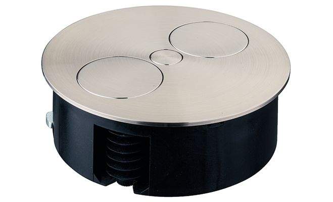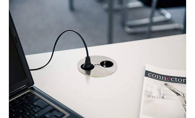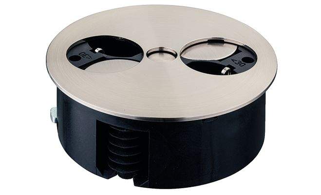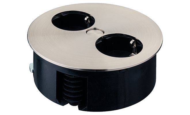 Поворотний блок розеток для столу має 2 євро розетки із захисним контактом. Корпус виконаний із пластику, колір срібний; кожух:цинкове лиття. Даний елемент ідеально підходить для застосування в сучасних кухнях, офісах, столах для конференцій. Монтаж: товщина панелі 20-40 мм, отвір 105 мм, монтажна глибина 40 мм, установка на засувку.