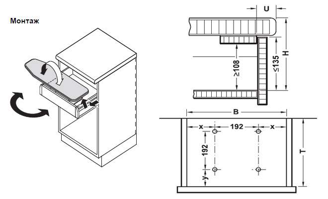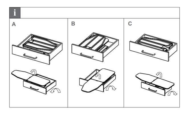 Опис Прасувальна дошка монтується у висувний ящик сталь і алюміній сірий чохол з сірими смужками 56860764