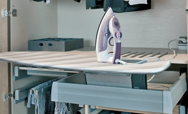 Прасувальна дошка монтується у висувний ящик сталь і алюміній сірий чохол з сірими смужками 56860764