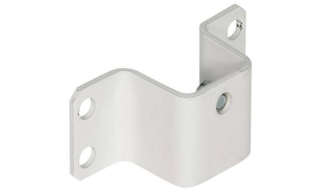 Проміжний тримач для запогання виступу дверки при монтуванні за поворотними дверима. Тримач виготовлений зі сталі з пластмасовим покриттям білого кольору. Висота проміжного тримача 15 мм. Монтаж виконується шляхом пригвинчування до направляючої, може кріпитись з ліва зправа або з двох сторін.