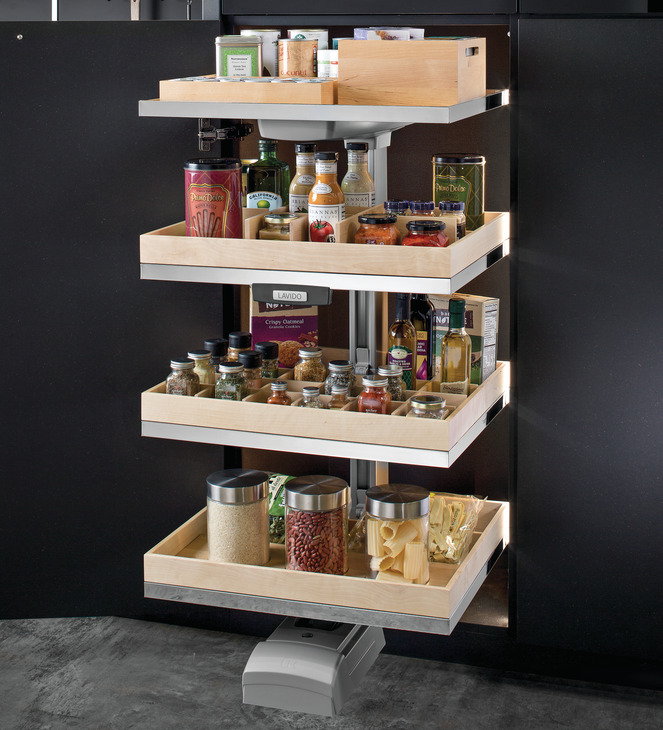 Панель для комори, для висувної панелі LAVIDO, зберігання на верхній полиці: 1524 мм. Функція регулювання висоти полиць; просто підніміть важіль, щоб розблокувати полицю для перевстановлення. Це надзвичайно гнучке рішення для зберігання в коморі забезпечує легкий доступ з трьох сторін. Ідеально плавна робота. Бокові стінки з загартованого скла, що знімаються. Вантажопідйомність: на полицю: 19,8 кг/всього: 128,7 кг. Довжина висувної частини: 470 мм. Висота зберігання верхньої полиці: 1524 мм. Матеріал: Сталь. Покриття: Срібний. Мін. внутрішня глибина шафи: 500.00 мм. Вам потрібно замовити 3 компоненти для комори Lavido