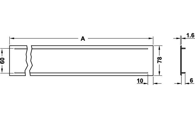 Прямокутна вентиляційна решітка з прорізами, повздовжними кромками з фаскою та гарпунними перемичками. Вентиляційна решітка виготовлена з алюмінію з анодованою поверхнею сріблястого кольору. Ширина решітки 78 мм, довжина 240 мм, товщина 2 мм, розмір вирізу 220х60 мм, площа проходу 36 см². Монтаж решітки виконується шляхом запресовування.