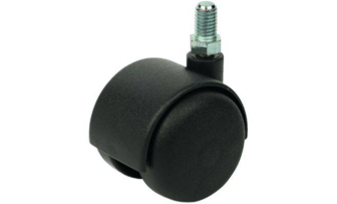 Матеріал: колесо: пластмаса. Колір: колесо: чорний. Робоча поверхня: тверда. Поворотний, з корпусом дашка. Монтаж: різьбовий штифт. Розміри: M10 x 15 мм. Діаметр колеса: 50 мм. Поверхня / Колір: чорний. Констр. висота: 60 мм. Несуча здатність: 40 кг