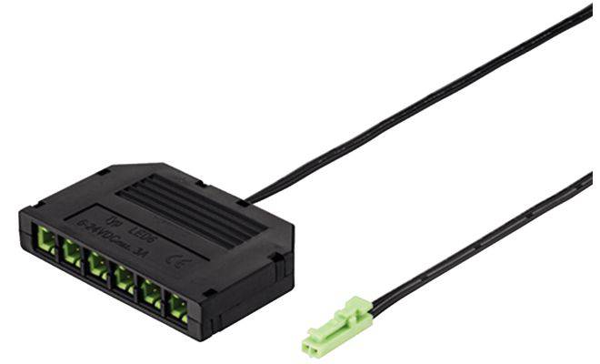 Призначений для підключення до шести освітлювальних елементів (споживачів) до одного роз’єму блока живлення в системах меблевого освітлення Häfele Loox.