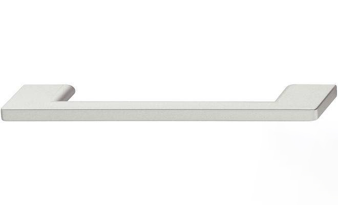 Меблева ручка кольору алюмінію типу скоба, виготовлена з пластику. Підходить для дерев’яних дверей.