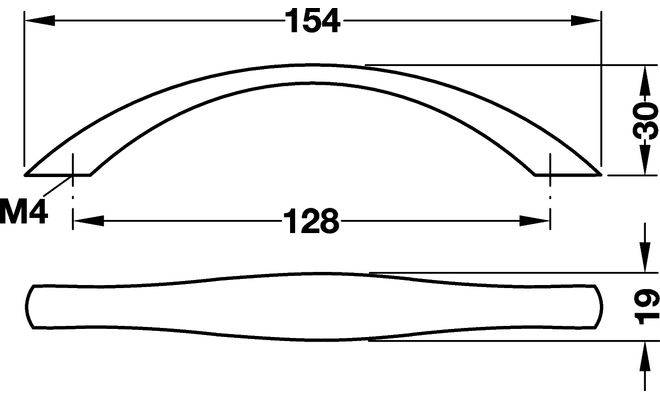 Ручка довжиною 154 мм типу дуга, матеріал — цамак, кольору нікелю чи хрому з матовою поверхнею. Може застосовуватись для меблів з деревини. Варіантів товару є 2, подібні за матеріалом, кольором та поверхнею. Завдяки своєму кольору і матеріалу, Ручка чудово підходить до багатьох меблевих виробів.