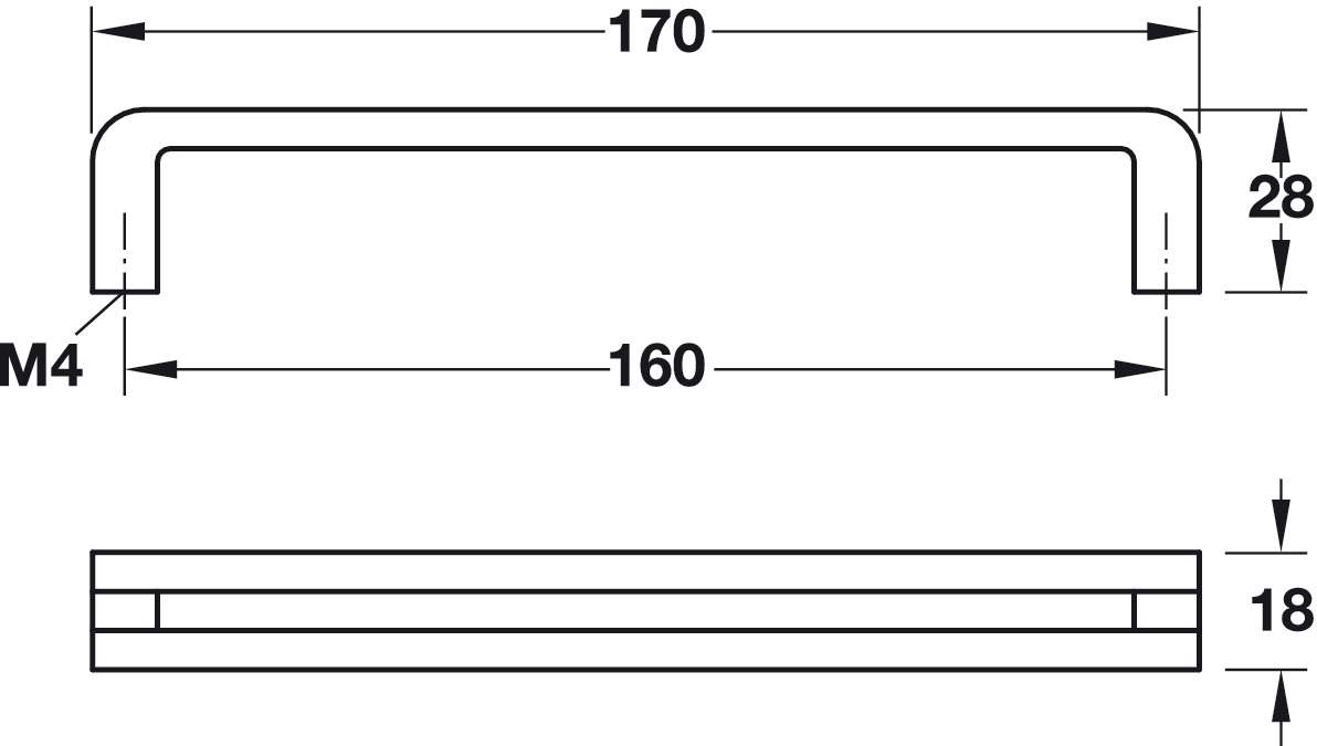 Технічні характеристики Ручка меблева цамак чорний матовий 170 x 28 мм 11034306
