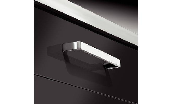 Меблева скоба серії Déco артикул 110.34.666 з цинкового лиття у покритті нікель браш. Міжосьова відстань 160 мм оптимальна для середніх фасадів.