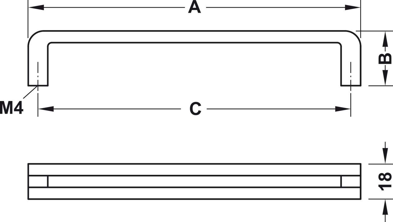 Опис Меблева ручка скоба Hafele 202 х 28 мм/192 мм цамак матовий чорний 11034307