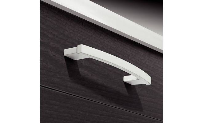 Меблева ручка білого кольору типу планка, виготовлена зі сталі, з хромованою поверхнею. Підходить для дерев’яних дверей.