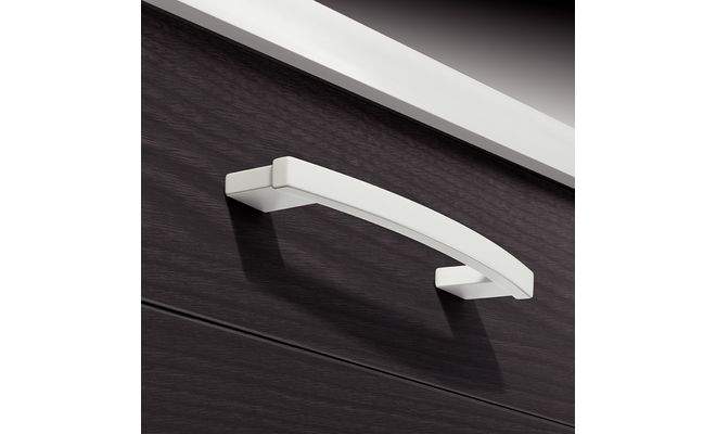 Меблева ручка чорного кольору типу скоба, виготовлена зі сплаву цамак. Підходить для дерев’яних дверей.
