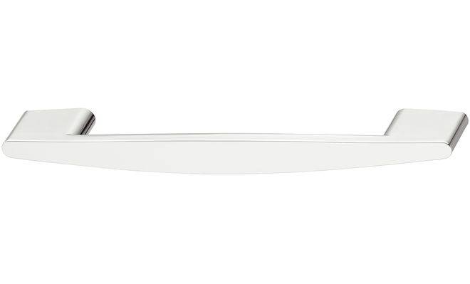 Меблева ручка типу скоба, виготовлена зі сплаву цамак, з хромованою поверхнею. Підходить для дерев’яних дверей.