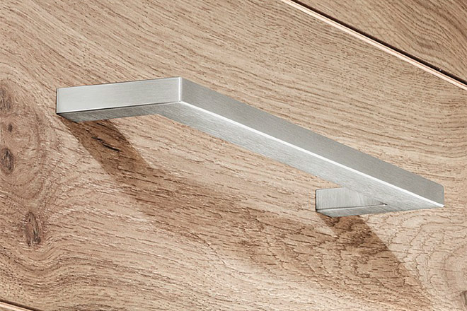 Ручка меблева, типу скоба, виготовлена з нержавіючої сталі з матовою поверхнею, довжиною 303 мм. Застосовується для меблів з деревини. Кріплення відбувається за допомогою фіксованої нарізної втулки. Колір ручки - нержавіюча сталь.