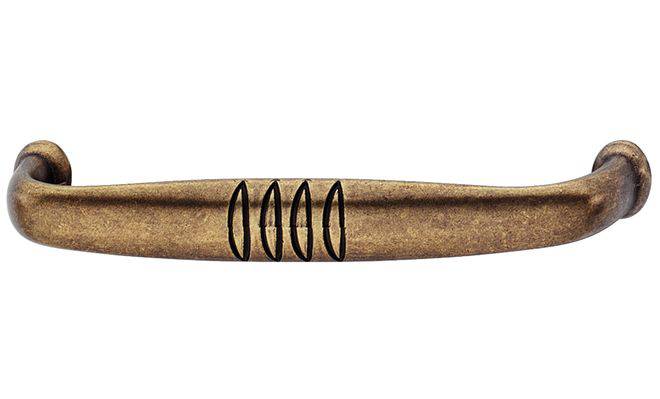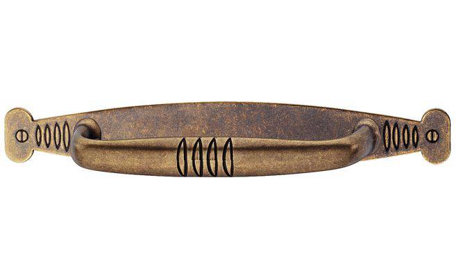 Меблева ручка для дерев’яних дверей. Виготовлена зі сплаву цамак, колір потертий.