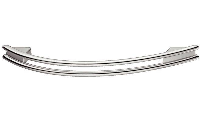 Ручка-дуга подвійна довжиною 126 та 170 мм, матеріал — цамак, кольору хрому з полірованою поверхнею, стане чудовим вибором для меблів з деревини. У наявності є 2 види товару з різною довжиною, що дозволяє найкраще підібрати її до дерев'яних меблів.