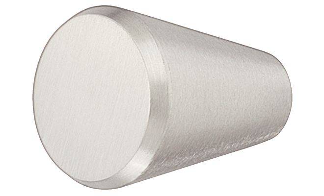 Меблева ручка-кнопка, для дерев'яних дверей. Виготовлена з нержавіючої сталі, класу якості 1.4305, з матовою поверхнею.