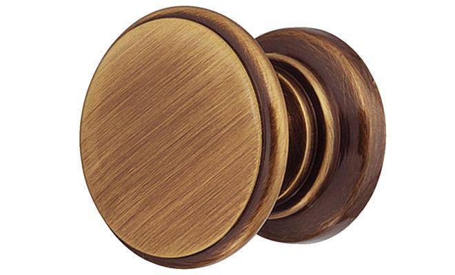 Меблева ручка-кнопка для дерев'яних дверей виготовлена з латуні з поверхнею кольору старої бронзи.