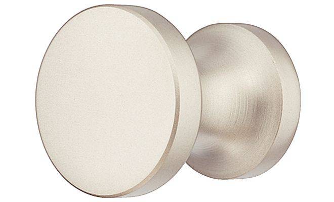 Меблева ручка-кнопка круглої форми, для дерев'яних дверей. Виготовлена з нікельованої латуні з матовою поверхнею.