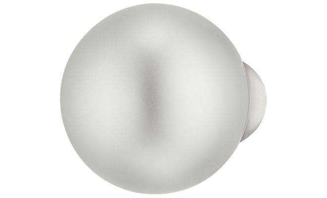 Меблева ручка-кнопка кулястої форми для дерев'яних дверей. Виготовлена з анодованого алюмінію сріблястого кольору.