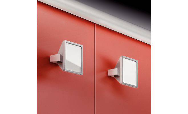 Опис Ручка-кнопка цамак хромований полірований з білим склом 40х29мм 13114271