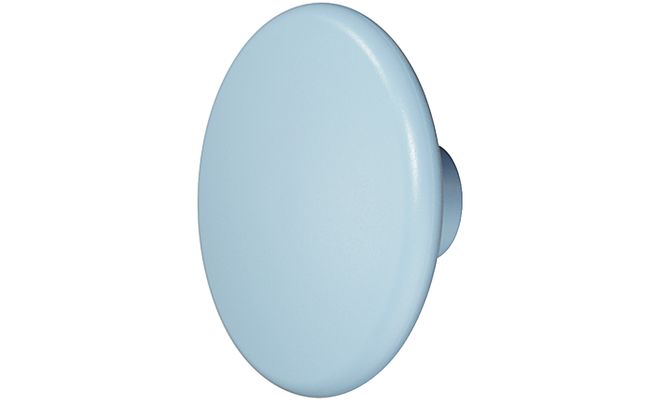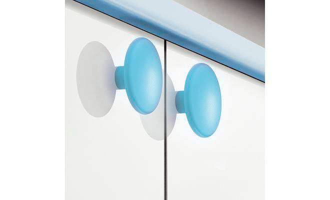 Меблева ручка-кнопка овальної форми для дерев'яних дверей. Виготовлена з пластмаси синього кольору.