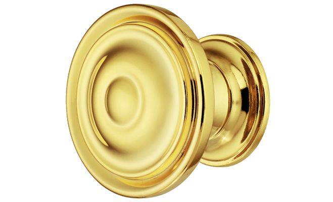 Меблева ручка-кнопка для дерев'яних дверей. Виготовлена з цинкового сплаву цамак з полірованою поверхнею золотого кольору.