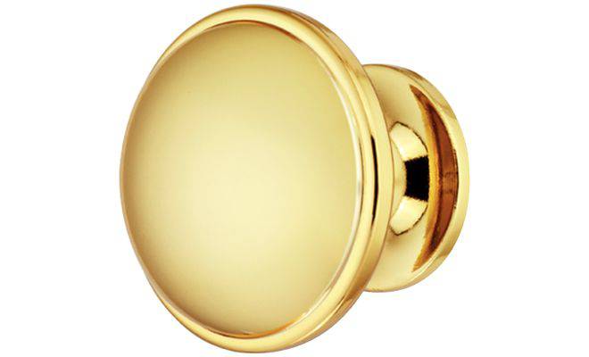 Меблева ручка-кнопка круглої форми для дерев'яних дверей. Виготовлена з цинкового сплаву цамак з полірованою поверхнею золотого кольору.