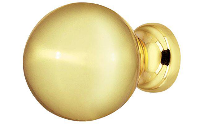 Меблева ручка-кнопка кулястої форми, для дерев'яних дверей. Виготовлена з латуні з полірованою поверхнею.