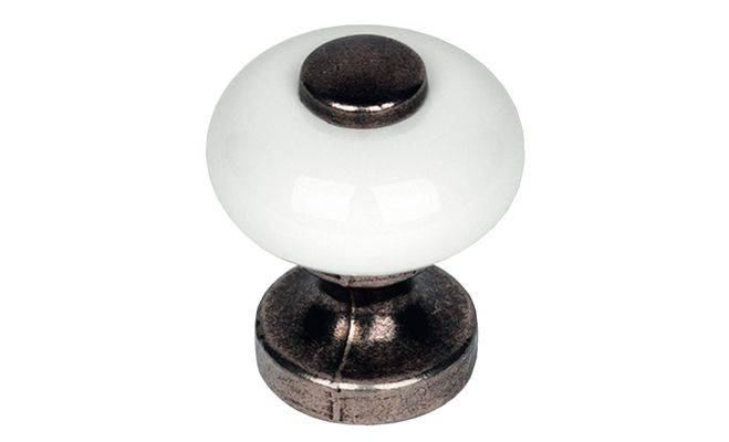 Меблева ручка-кнопка для дерев'яних дверей виготовлена з порцеляни, основа і вставка ручки виготовлена з цинкового сплаву.