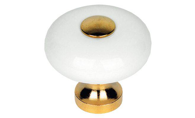Меблева ручка-кнопка для дерев'яних дверей виготовлена з порцеляни, основа і вставка ручки виготовлена з полірованої латуні.