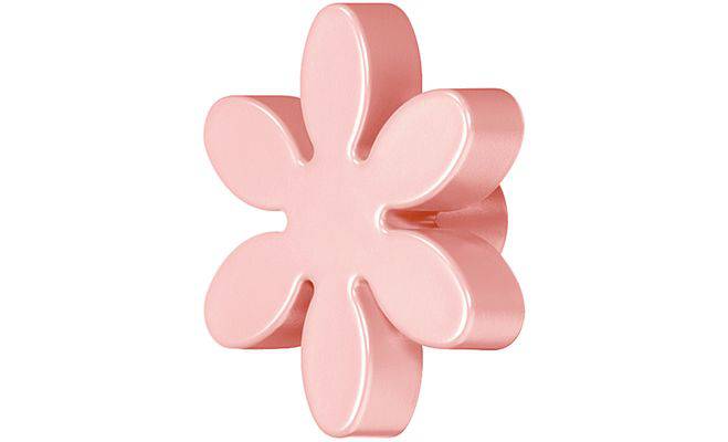Меблева ручка-кнопка у вигляді стилізованої квітки для дерев'яних дверей. Виготовлена з пластмаси блідо-рожевого кольору.