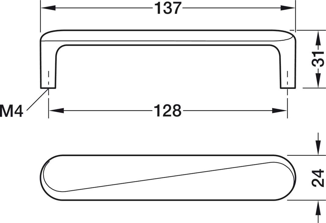 Технічні характеристики Ручка меблева скоба Häfele Déco нікель браш 137 x 31 /128 мм 10670601