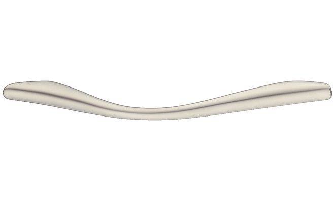 Ручка довжиною 125 і 158 мм типу дуга, матеріал — цамак, нікельованого кольору з матовою поверхнею. Може застосовуватись для меблів з деревини. Варіантів товару є 2, подібні за матеріалом, кольором та поверхнею. Завдяки своєму кольору і матеріалу, Ручка чудово підходить до багатьох меблевих виробів.