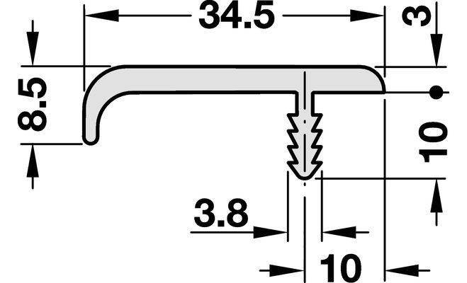 Опис Меблева ручка - профіль алюміній срібний 34.5 х 8.5 х 2500 мм 12615900