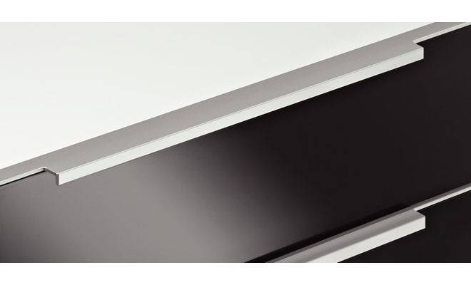 Меблева ручка-профіль для дерев'яних дверей виготовлена з алюмінію з анодованою поверхнею сріблястого кольору.