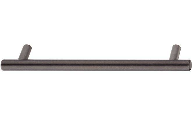 Меблева ручка сірого кольору типу релінг, виготовлена зі сталі. Підходить для дерев’яних дверей.