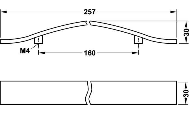 Ручка довжиною 257 мм типу дуга, матеріал — алюміній, кольору нержавіючої сталі з матовою поверхнею. Може застосовуватись для меблів з деревини. Завдяки своєму кольору і матеріалу, Ручка чудово підходить до багатьох меблевих виробів.