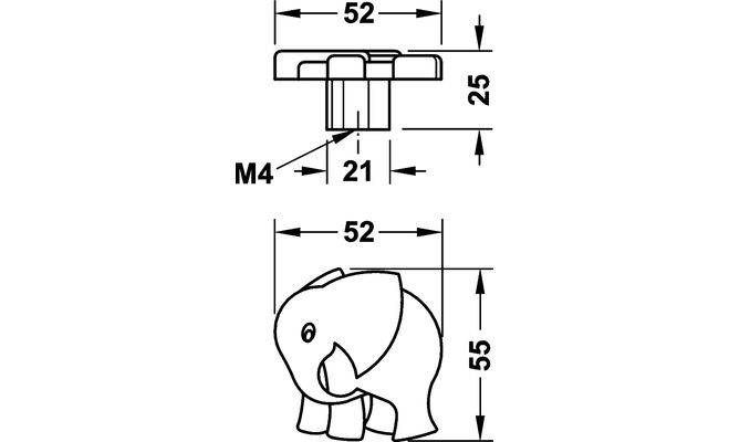 Технічні характеристики Меблева ручка дитяча, рожеве слоненя 52 х 25 мм 13868411