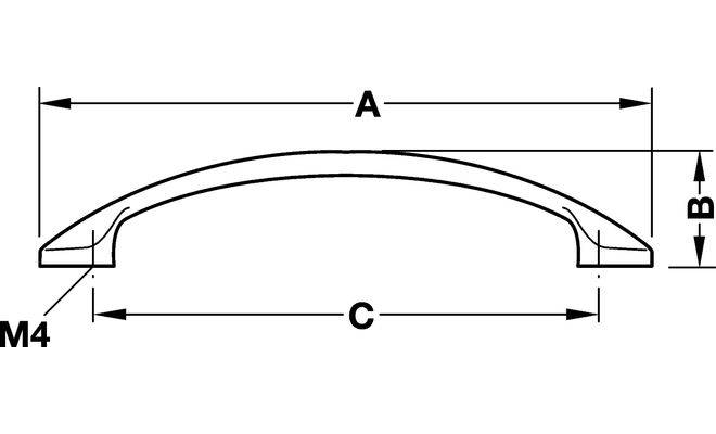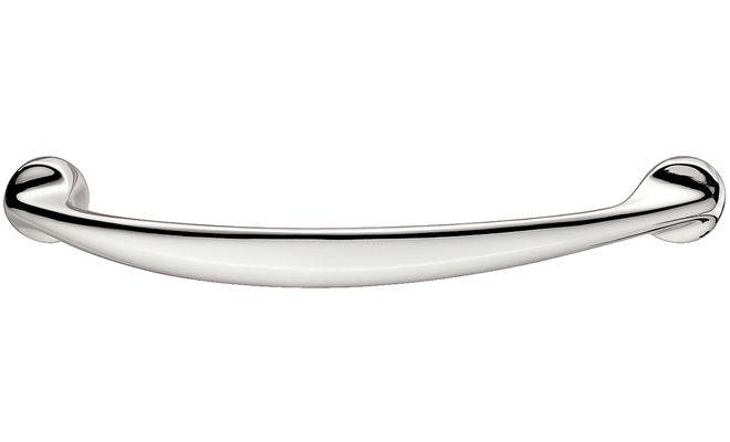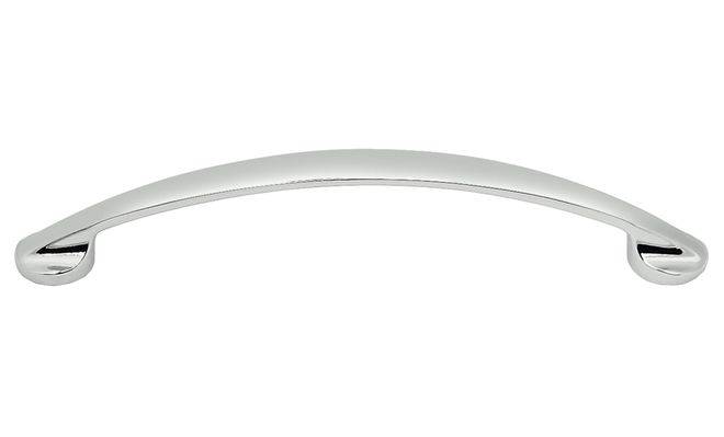 Ручка довжиною 117 мм типу скоба, матеріал — цамак, кольору хрому з полірованою поверхнею. Може застосовуватись для меблів з деревини. Завдяки своєму кольору і матеріалу, Ручка чудово підходить до багатьох меблевих виробів.