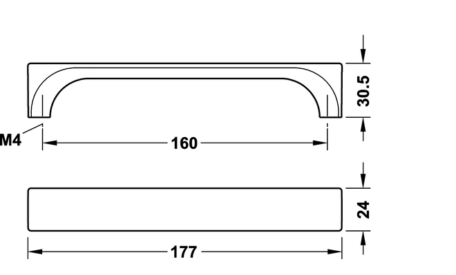 Технічні характеристики Ручка меблева цамак антрацит 177x30 10113516